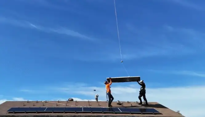 Using drone lifts and positions each panel exactly where it’s needed. The process ensures accuracy and alignment that traditional methods can’t match.